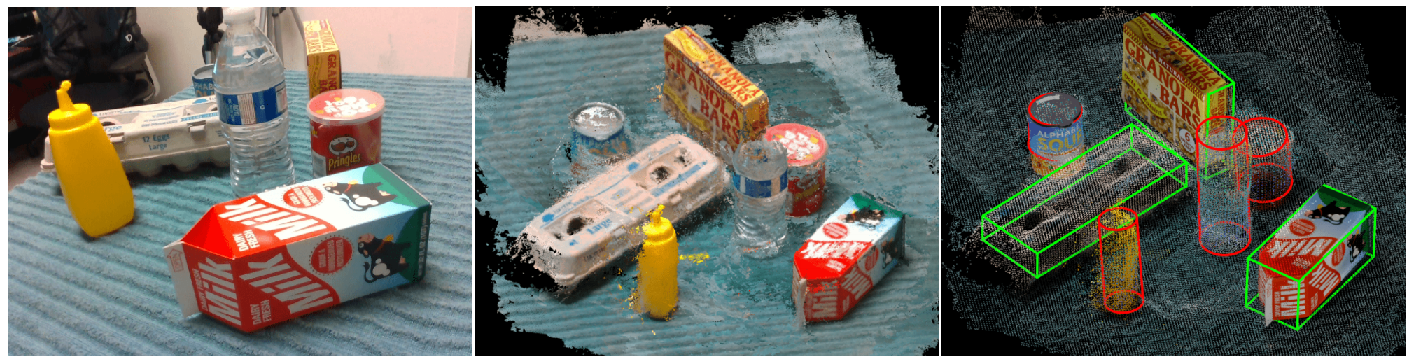 A system for multi-level scene awareness for robotic manipulation, including three types of information: 1) a point cloud representation of all the surfaces in the scene, for the purpose of obstacle avoidance. 2) the rough pose of unknown objects from categories corresponding to primitive shapes (e.g., cuboids and cylinders), and 3) full 6-DoF pose of known objects.